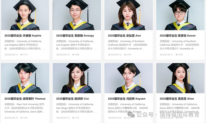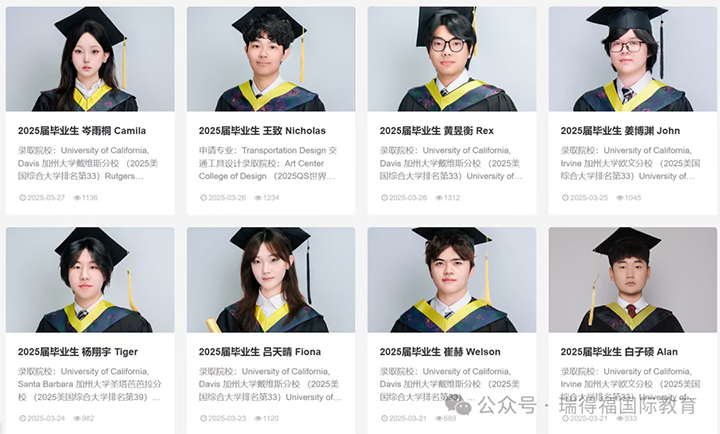 自建校以来,瑞得福国际学校已培养出七届毕业生,升学成果节节攀升,目前已经达到80%的学生进入全美顶尖前50大学名校、加拿大八大、香港八大、英国前十等世界顶尖名校,100%升学率!仅2025届TOP40的UC加州系大学录取就获得了38封!